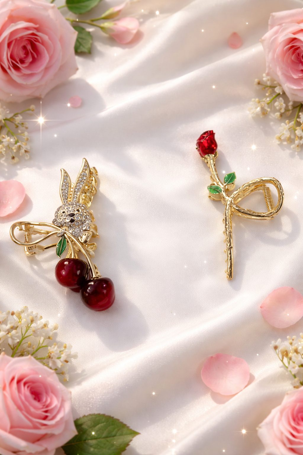 Ideal for daily wear, festive occasions, date nights, and gifting, the Rose Cherry Hair Claw is a must-have accessory for women who love elegant yet trendy hair jewelry.