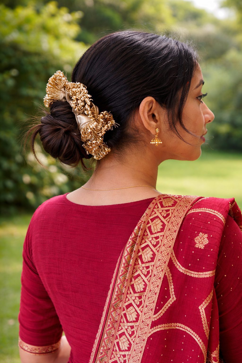 Perfect for weddings, festivals, poojas, and ethnic celebrations, it pairs effortlessly with sarees, lehengas, and suits. Lightweight yet statement-making, it offers a secure hold while adding a luxurious finish to your hair.