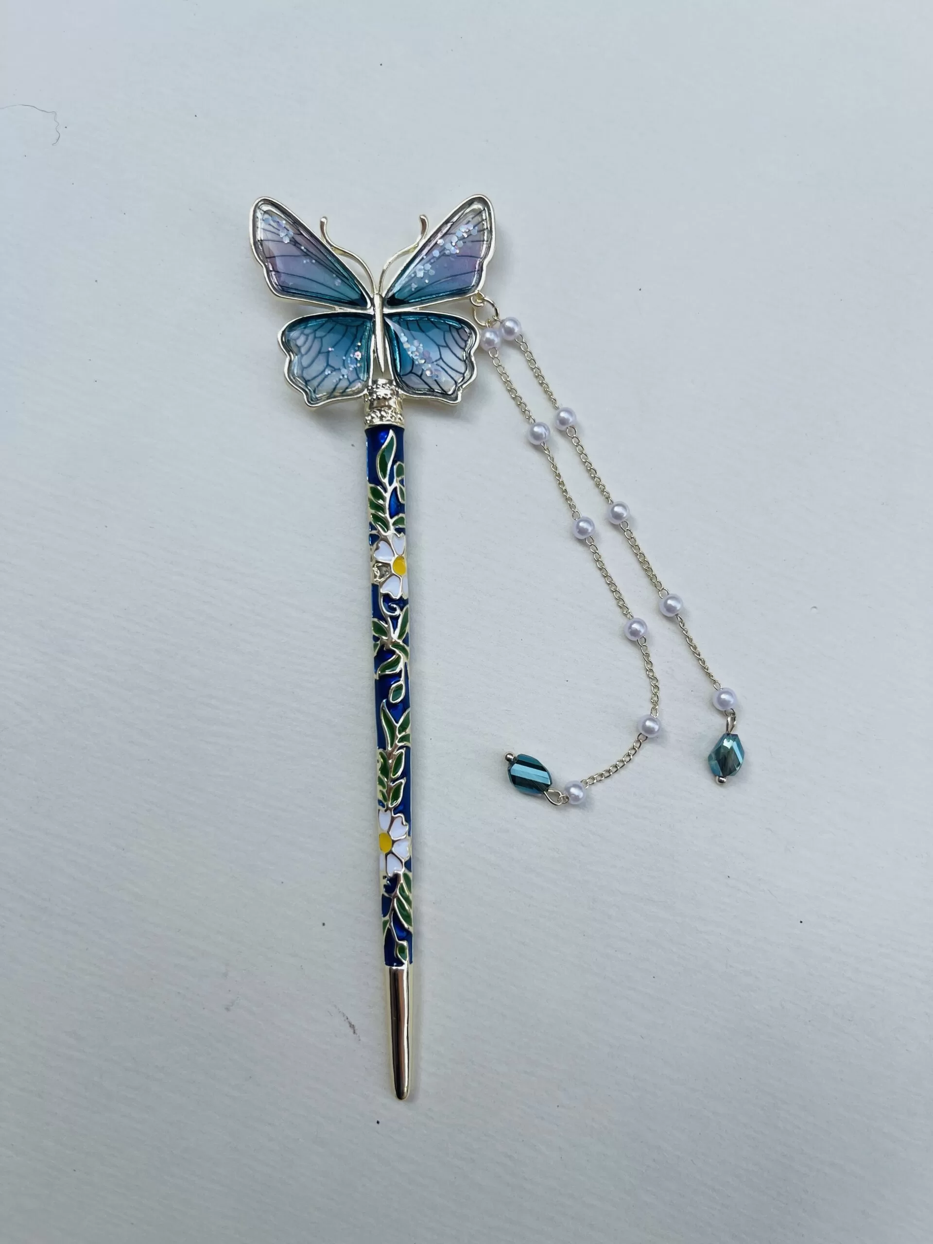 This butterfly pearl drop hair clip is designed for modern Indian girls who love effortless glam. The crystal butterfly paired with delicate pearl chains gives a chic, aesthetic finish—ideal for parties, festive fits, and late-night reels.