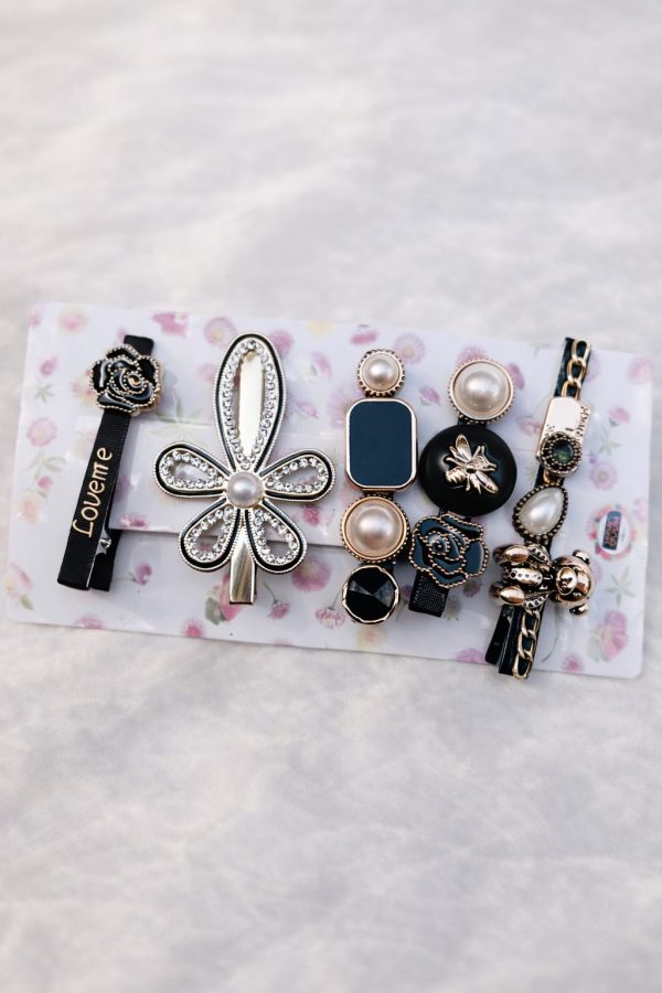 Add a touch of refined elegance to your hairstyle with the Midnight Pearl Designer Hair Clip Set. This premium collection features a beautifully coordinated mix of black, pearl, and metallic accents, combining floral motifs, modern shapes, and delicate detailing.