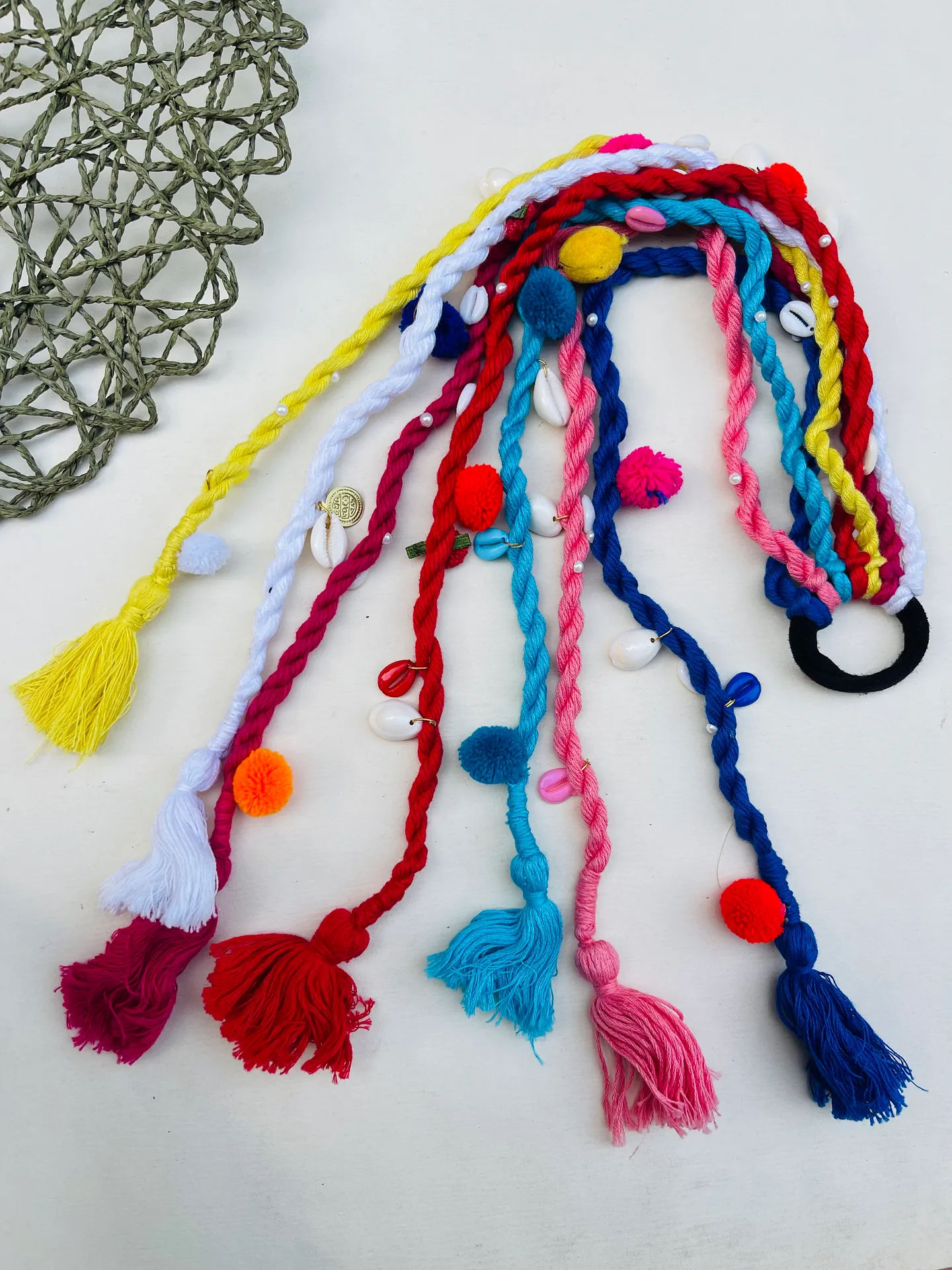 Add a burst of colour and tradition to your look with our Multicolour Parandi, designed to elevate braids, buns, and half-up hairstyles effortlessly. Crafted with soft braided threads in rich hues, this parandi is embellished with cute pom-poms, shells, and tassels for a lively, boho-ethnic appeal.