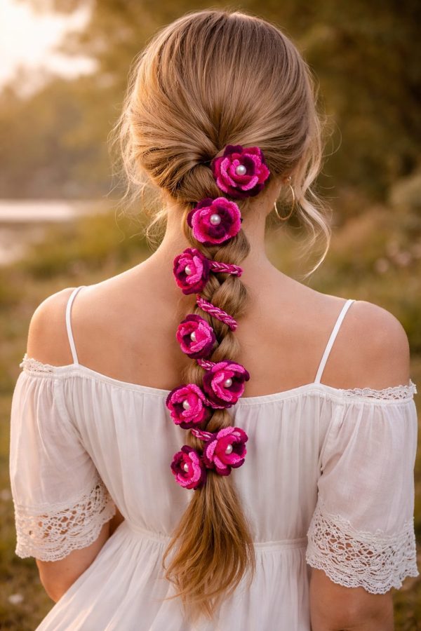 Enhance your braid with timeless charm using our Crochet Flower Hair String, thoughtfully handcrafted to create a graceful, feminine look. Featuring delicately crocheted rose flowers in a rich pink shade, this accessory blends effortlessly with natural hair for a seamless finish.